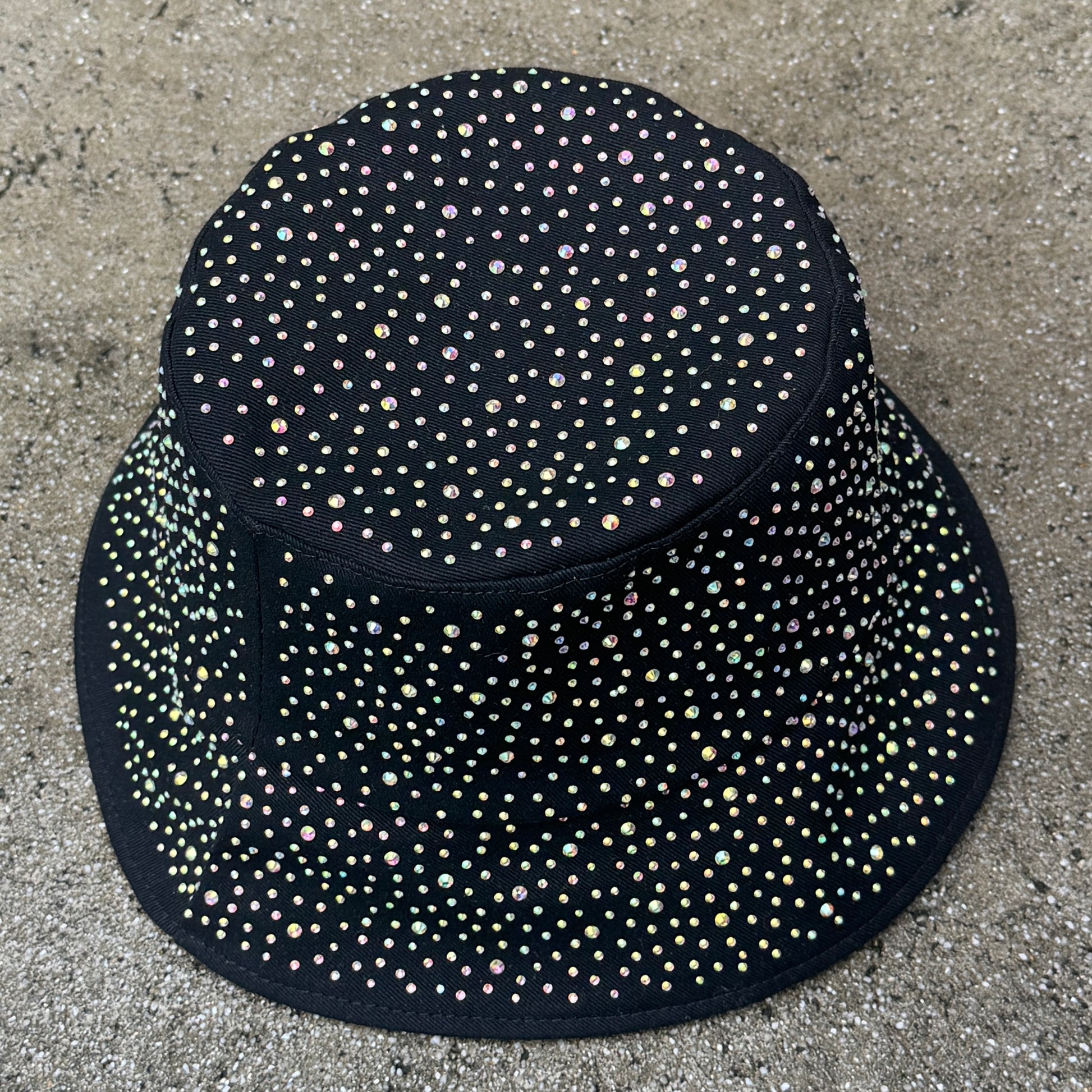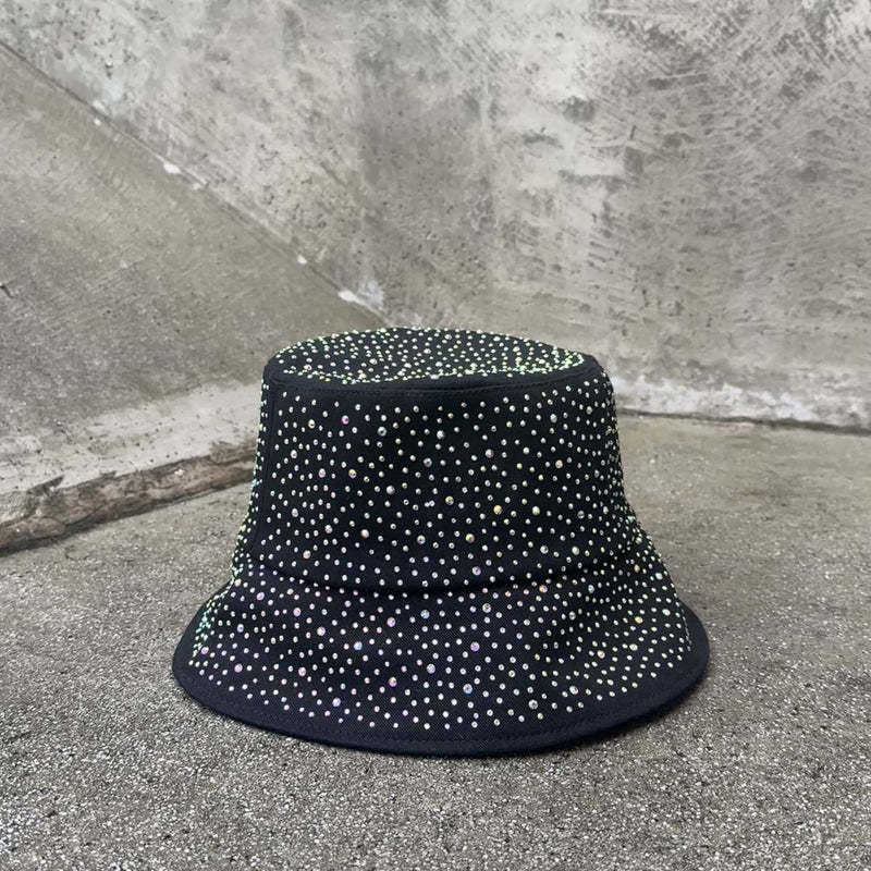 Turn heads day or night with the Midnight Spark, a black cotton bucket hat covered in dazzling rhinestones. Designed to catch the light from every angle, this statement piece blends casual streetwear with full-glam energy. Soft and impossible to ignore.