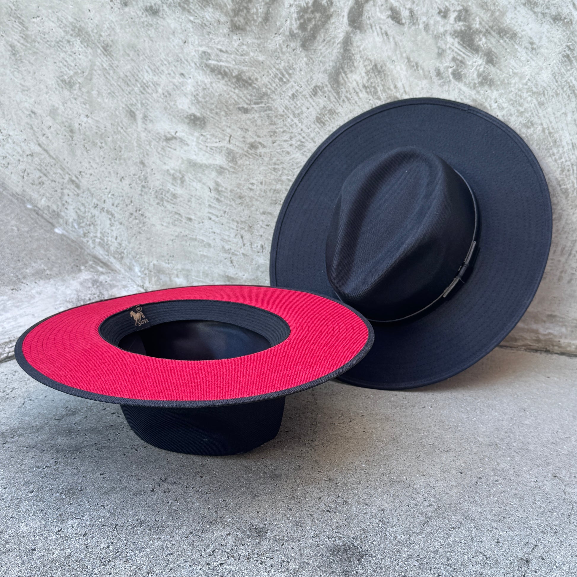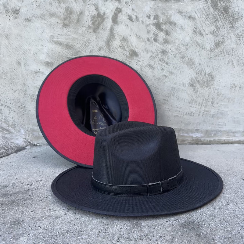 Add sophistication to your look with the Red Bottom Fedora Hat. Handmade with linen, this stylish hat features a wide, stiff brim and a striking red bottom detail, making it perfect for both men and women who appreciate luxury and durability.