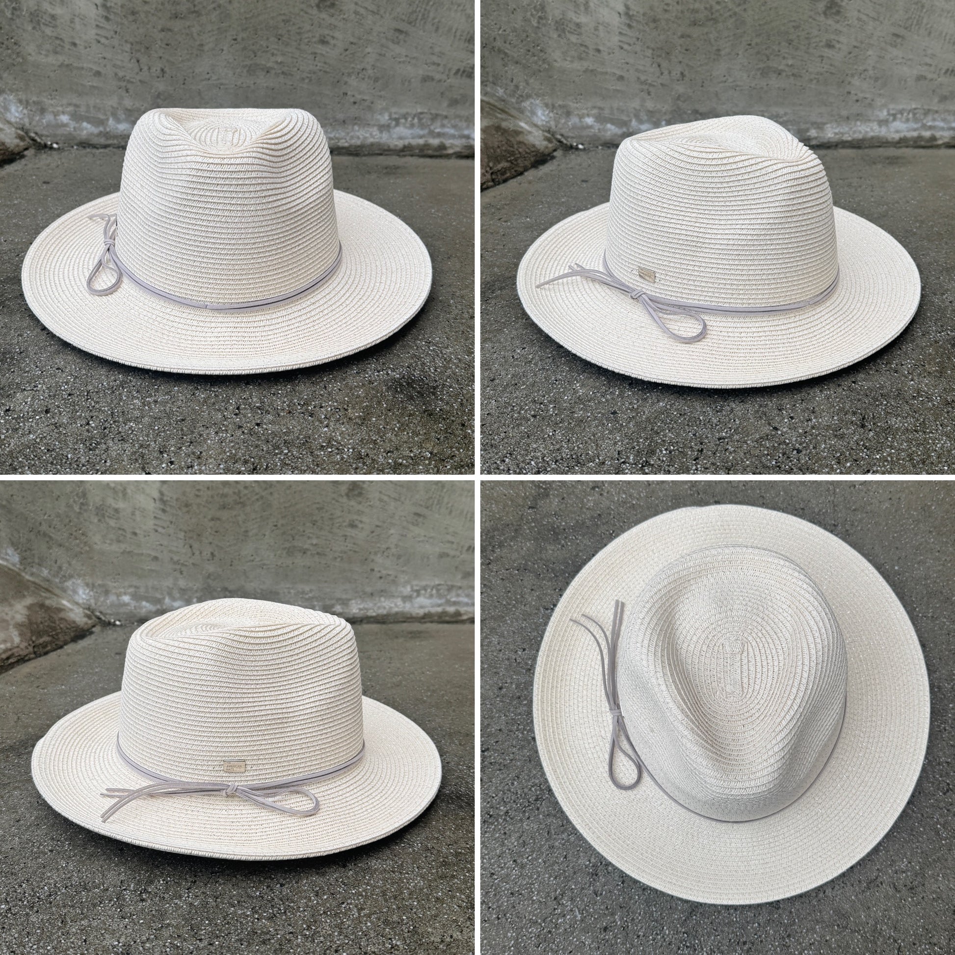 A refined take on the classic safari silhouette, featuring a gently pinched crown and soft, pale shimmer. Effortlessly elegant and perfect for sun-drenched days.