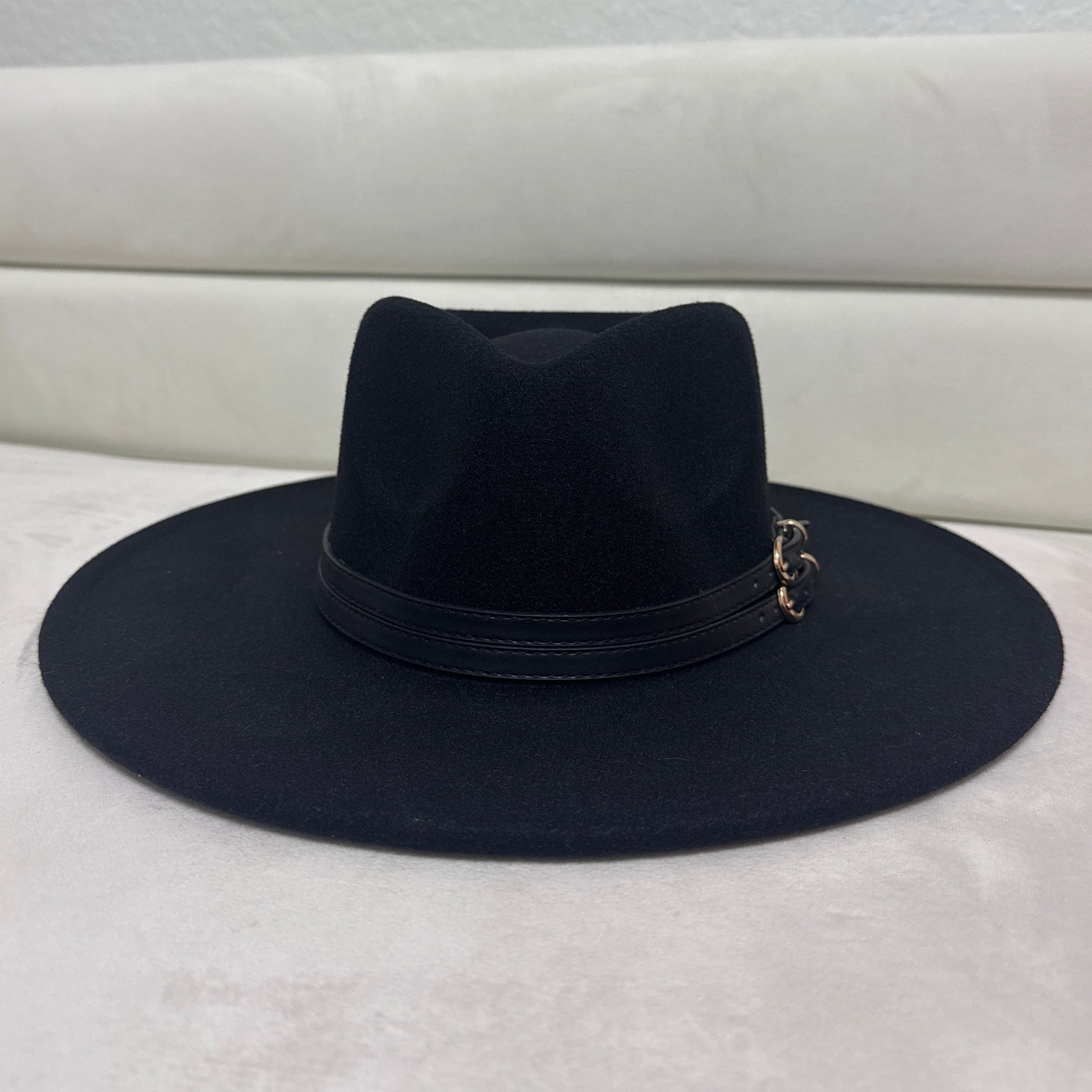 Elevate your style with the Dionisio Fedora Hat, featuring a sleek black design accented by a distinctive double belt. Expertly crafted for a refined silhouette, this hat adds a touch of sophistication to any ensemble while offering both comfort and timeless appeal. Perfect for those who appreciate subtle yet striking accessories.