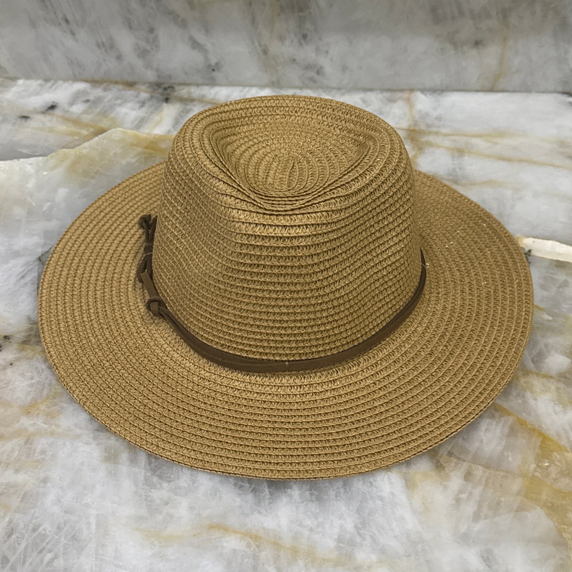 Turn heads with this stylish wide brim fedora, crafted from high-quality straw material. Featuring a black grosgrain trim, this foldable, adjustable hat is perfect for both men and women. A must-have accessory for your summer wardrobe.