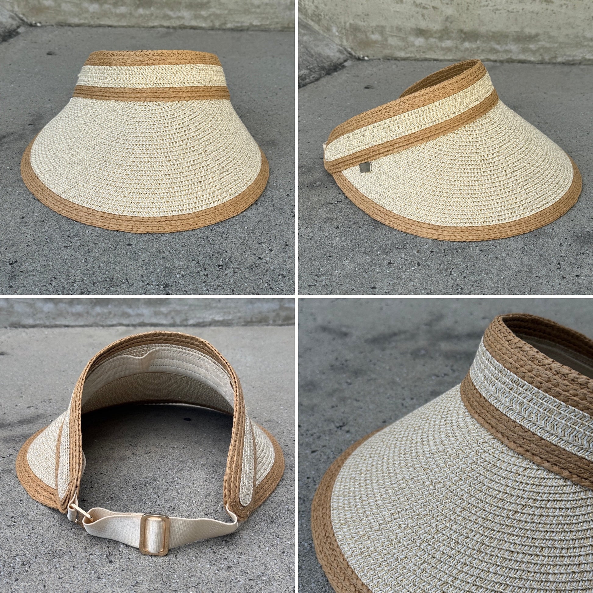 This wide brim sun visor features a stylish Paperbraid construction enhanced with subtle Lurex metallic threads, offering both durability and a refined shimmer. Its elastic closure ensures a secure, comfortable fit, making it an excellent choice for extended outdoor wear while providing effective sun protection. Ideal for those seeking a blend of functionality and sophisticated design.