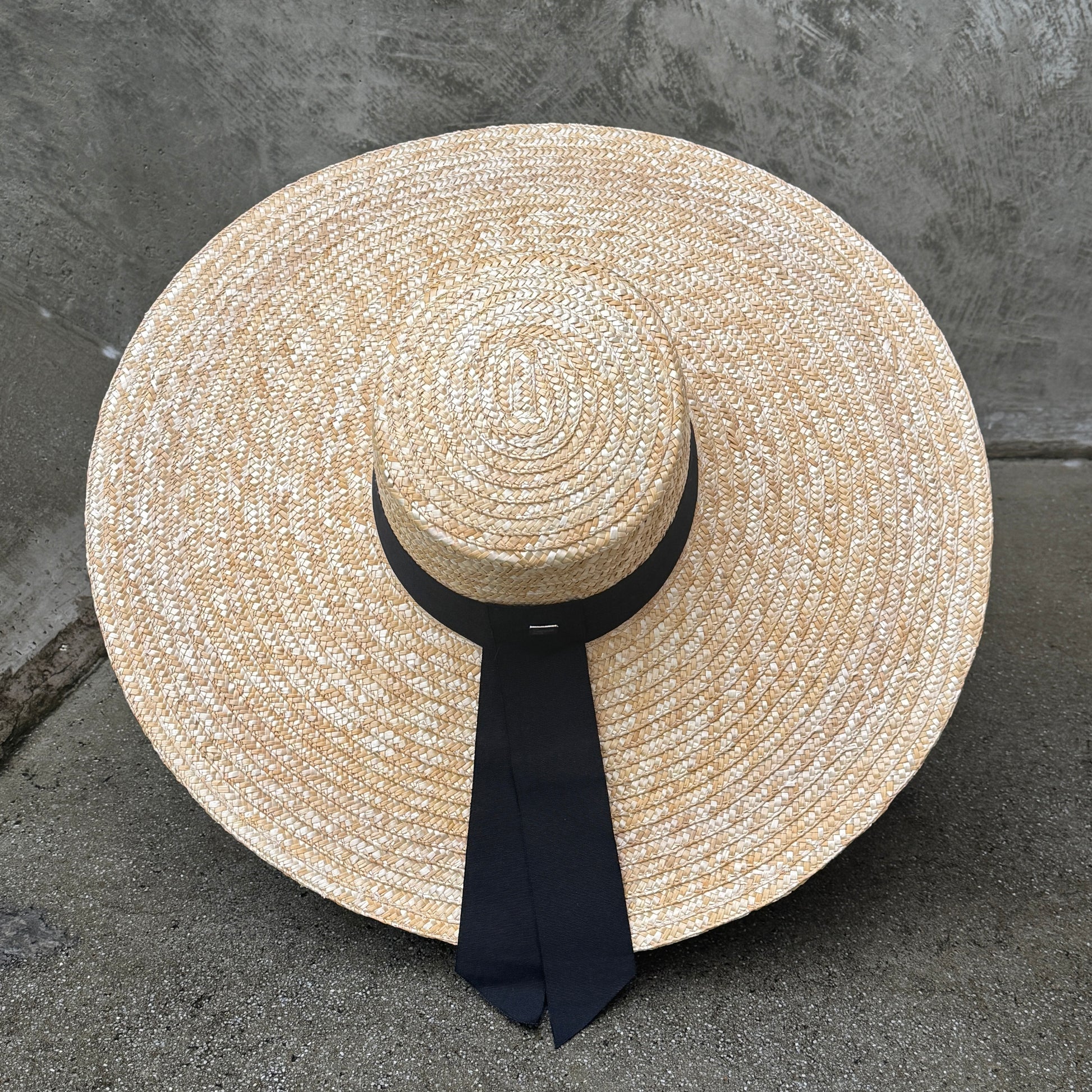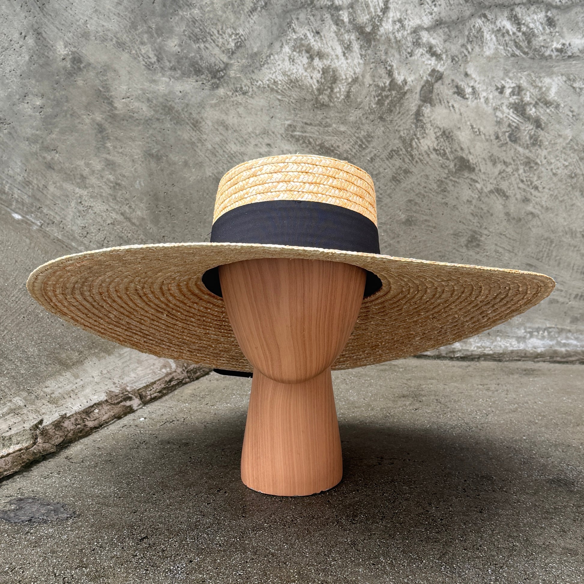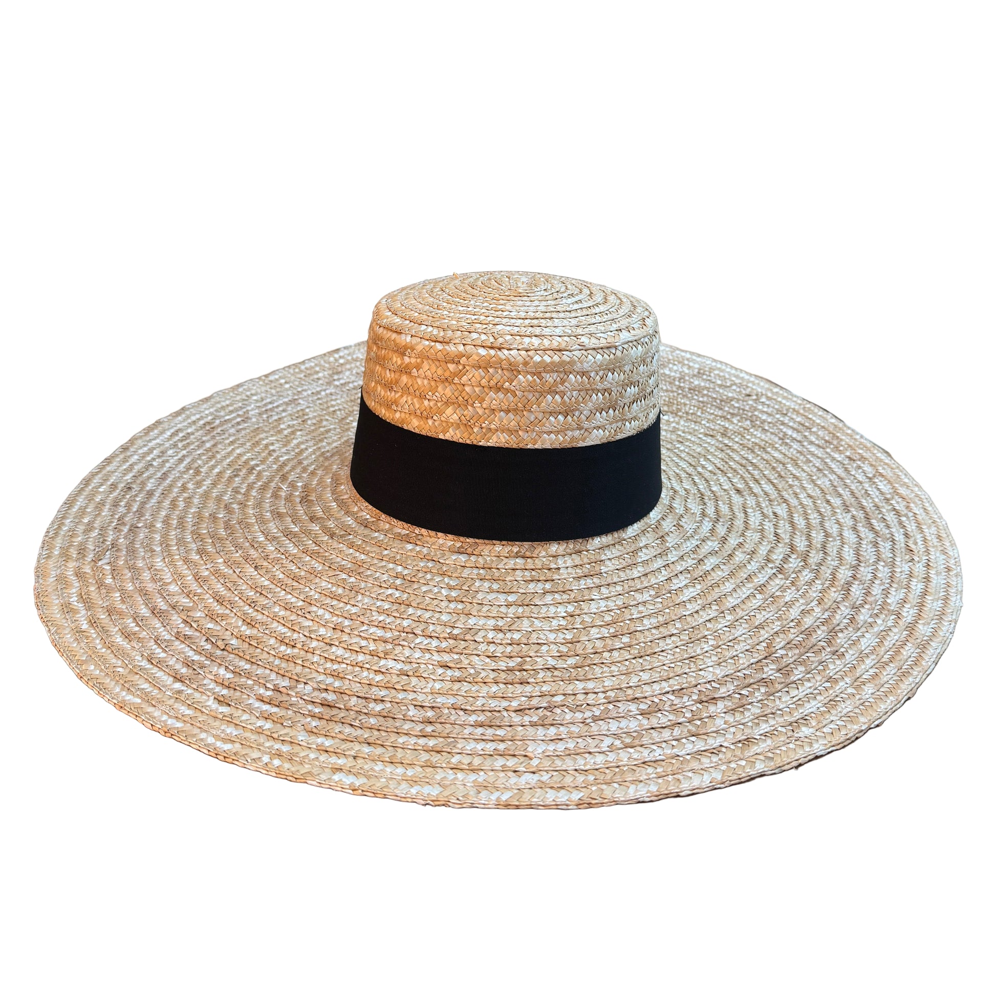 Elevate your style with the Wide Brim Bolero, a structured boater hat crafted from natural straw. Its wide brim offers elegant sun protection, while the black grosgrain band adds a refined contrast for a timeless, sophisticated look. Perfect for occasions that call for classic charm with a modern edge.